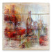 Das stimmungsvolle Motiv der zeitgenössischen Künstlerin Annette Schmucker zeigt Weingläser und Weinflaschen in ausdrucksstarken und wirkungsvollen Rottönen.