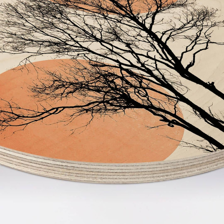 Holzbild Sonne und Mond in Orange - Kubistika - Rund