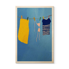 Holzbild Sonnige Landschaft in Blau und Gold - SpaceFrog Designs