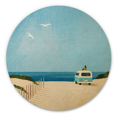Henry Rivers' minimalistische Reiseillustrationen schaffen eine perfekte Verbindung zwischen Kunst und Natur, und dieses runde Holzbild bringt genau diese Balance in deine Räume. Ideal für Wohnzimmer, Schlafzimmer oder entspannte Arbeitsbereiche, in denen eine beruhigende und zugleich inspirierende Atmosphäre gefragt ist.