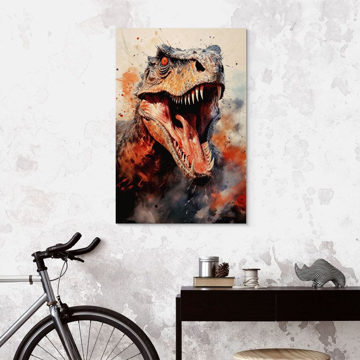 Ob im Wohnzimmer, im Büro oder als auffälliges Highlight im Jugendzimmer – dieses Bild passt perfekt in moderne und klassische Inneneinrichtungen. Die kraftvolle Ästhetik und unbarmherzige Ausstrahlung des T-Rex ziehen alle Blicke auf sich und machen deine Wand zum Mittelpunkt des Geschehens.