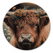 Holzbild Treechild - Hochlandkuh mit Blütenkranz - Rund