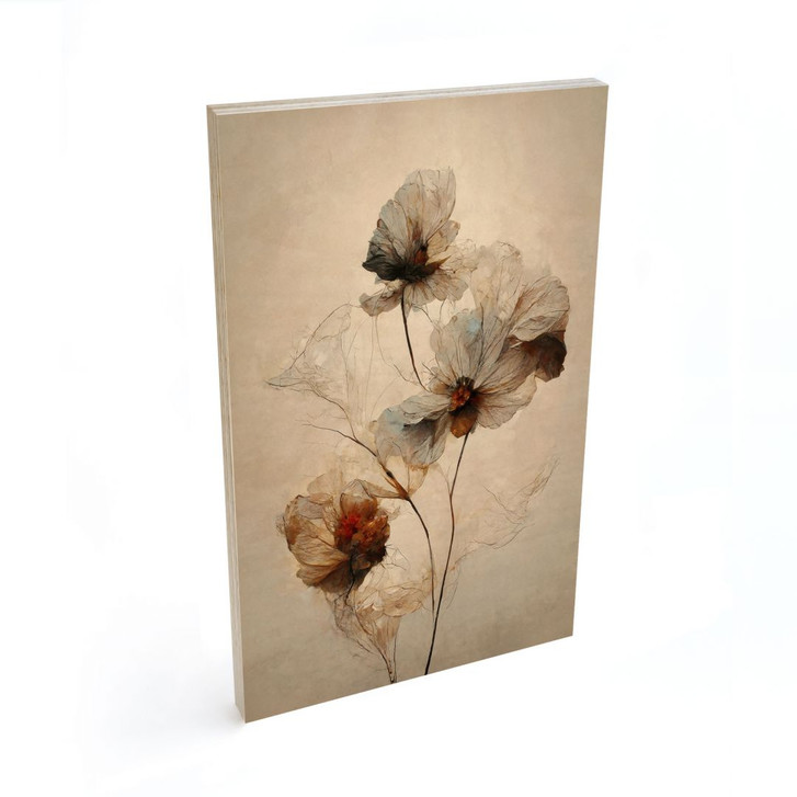 Dieses hochwertige Holzbild von Treechild bringt die zarte Eleganz von Trockenblumen auf ganz besondere Weise zur Geltung. Die detaillierten Blüten und feinen Strukturen verschmelzen mit der natürlichen Holzmaserung und schaffen so einen warmen, organischen Look. Die sanften Beige- und Erdtöne betonen die zarte Schönheit der Blumenkomposition und verleihen deinem Zuhause eine ruhige, harmonische Atmosphäre.