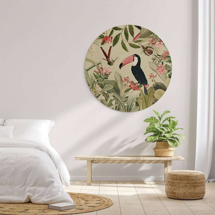 Holzbild Tukan im Dschungel-Paradies - UN Designs - Rund