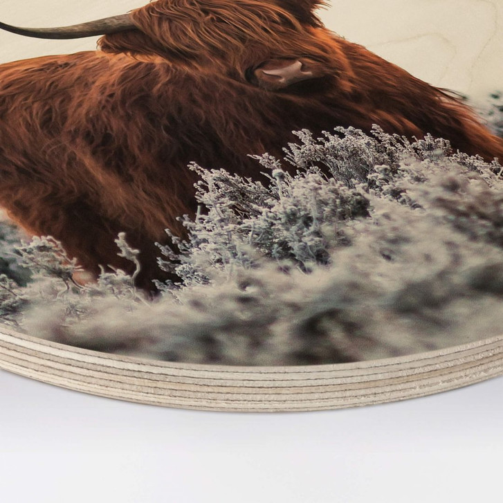 Dekoriere mit dem Holzwandbild und verbessere die Wohnqualität in den eigenen vier Wänden! Und dieses Foto strahlt Wärme aus und schafft ein entspanntes Raumklima. Die Schottische Hochlandrind ist auf den Britischen Inseln, in den Niederlanden und in Skandinavien zu finden. Es ist von kleiner Statur, gutmütig und mit seinem flauschigen Fell einfach schön anzusehen. Aufgrund seines freundlichen Wesens lassen sich viele Künstler und Fotografen von diesem robusten Tier inspirieren. Der Fotokünstler Jaap van den Helm fängt die Schönheit einer Weidelandschaft ein. Mittendrin eine junge Hochlandkuh. Durch den Hell-Dunkel-Kontrast entsteht ein Warm-Kalt-Effekt, der für eine ausgeglichene Raumatmosphäre sorgt. Mach die Natur zu deinem Thema und bereichere deine Räume mit Naturfotografien von Jaap van den Helm!