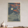 Diese Holzkunst bringt die Ruhe und Eleganz einer japanischen Vollmondnacht in dein Zuhause. Die harmonische Darstellung des Berges Fuji unter einem sanft leuchtenden Mond fängt die Essenz der traditionellen japanischen Kunst ein. Der ruhige See spiegelt den schneebedeckten Gipfel wider, während die roten Ahornblätter einen auffälligen Farbkontrast zu den kühlen Blautönen des Himmels und des Wassers bilden.