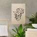 Das Bild ist in einem minimalistischen, schwarz-weissen Stil gehalten, der die humorvolle Szene auf das Wesentliche reduziert und gleichzeitig einen modernen Touch verleiht. Die feine Holzstruktur des Bildträgers verleiht dem Werk eine natürliche und warme Ausstrahlung, die das Design auf besondere Weise betont.
