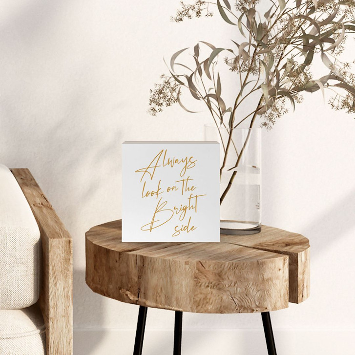 Holzbild zum Hinstellen - Always look on the bright side - KsanaKalpa - 15 x 15 cm
