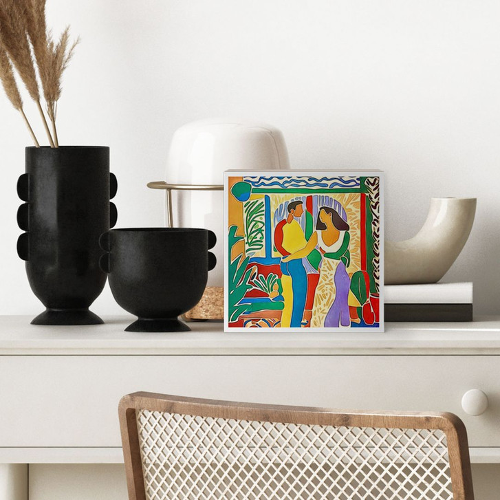 Holzbild zum Hinstellen - Liebespaar - Inspiriert von Matisse - Zamart - 15x15cm