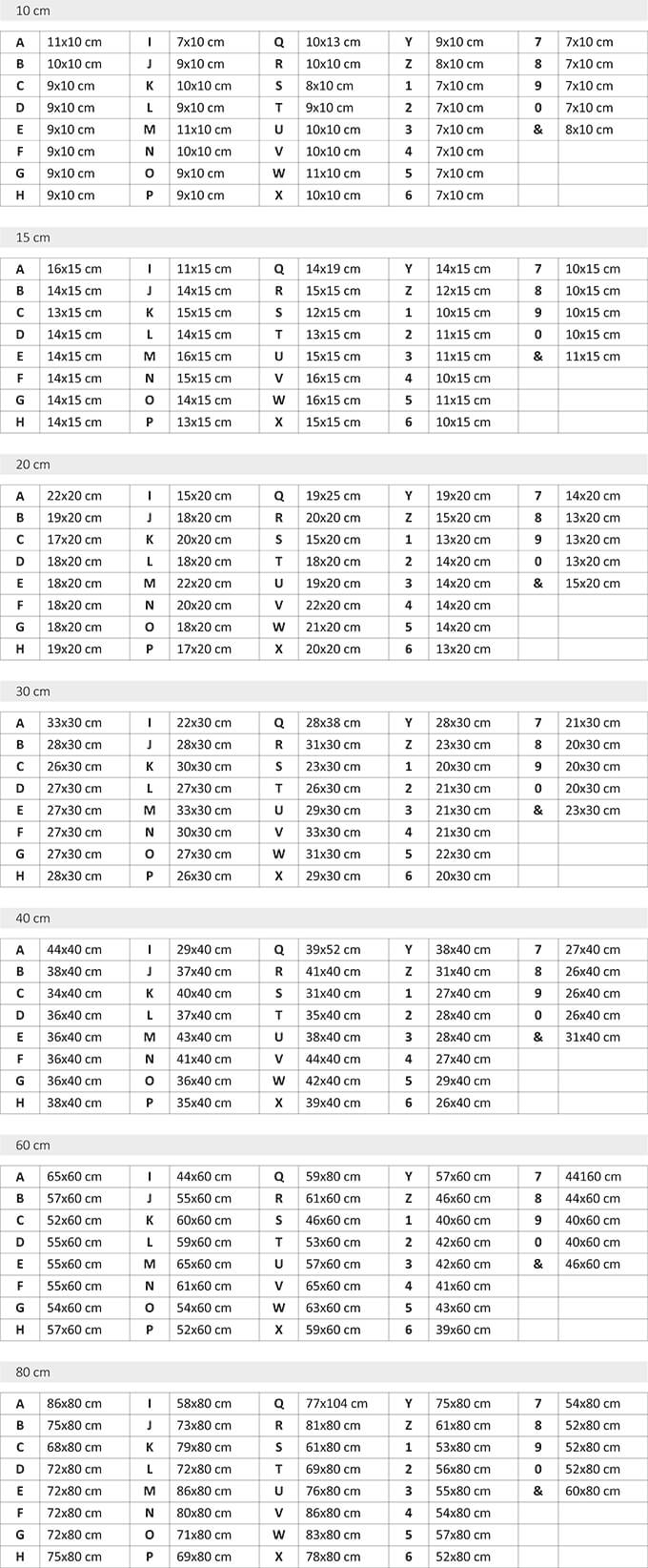 Die Dekobuchstaben können in der Höhe, durch den optischen Ausgleich, unterschiedlich ausfallen. Die jeweils angegebene Grösse bezieht sich auf die gesamte Deko.