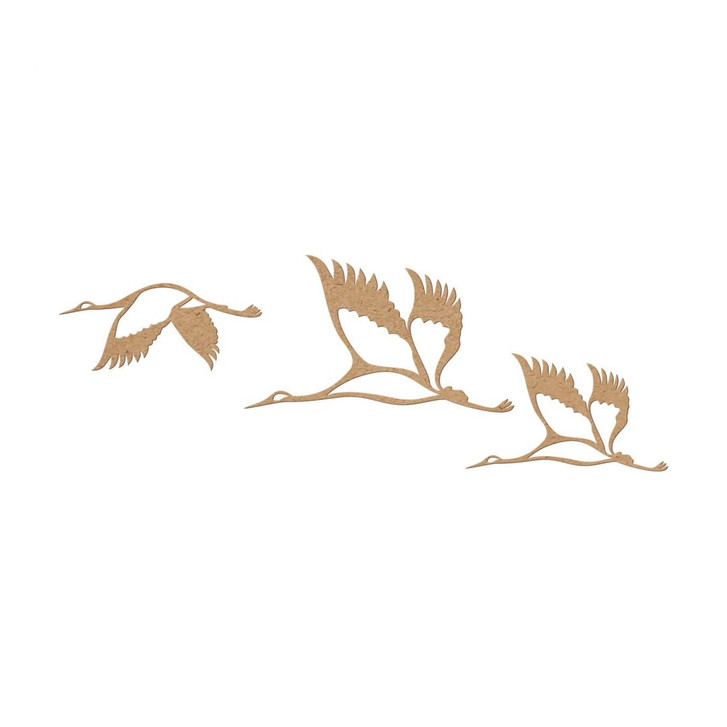 Holzdeko Kraniche Vogelschwarm 02 - MDF Natur (3-teilig)