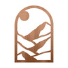 Zuhause ist der Ort, an dem man am besten entspannen kann. Umso wichtiger ist eine schöne Umgebung, die zum Wohlfühlen einlädt. Die Holzdekoration bietet einen Blick in die Ferne. Schaue durch das angedeutete Fenster auf eine Berglandschaft.