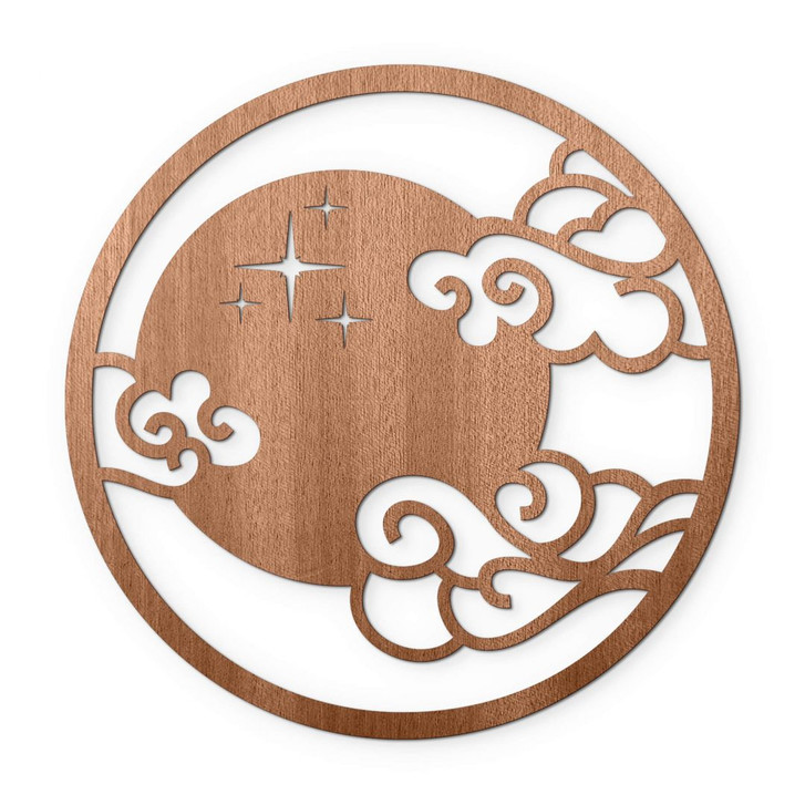 Holzdeko Mahagoni - Mond mit Wolken - Rund