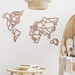 Die Weltkarte ist ein beliebtes Dekoelement, das nicht nur die Herzen von Reiseliebhabern und Abenteuersuchenden höher schlagen lässt. Diese Weltkarte ist besonders ungewöhnlich mit zwei Gesichtern in Form von Kontinenten. Die minimalistischen Linien verleihen ihr ein sehr feines Aussehen mit viel Liebe zum Detail. Mit dieser dekorativen Karte kannst du einen künstlerischen Blickfang schaffen.