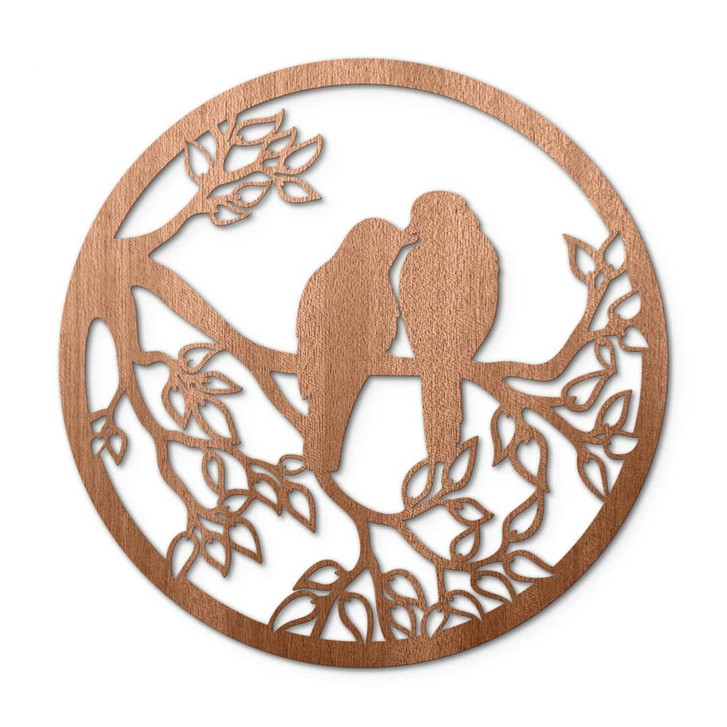Holzdeko Mahagoni - Zwei Vögel sitzen auf dem Ast - Rund