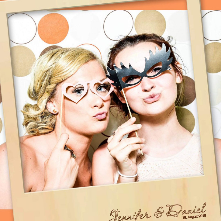 Der Fotorahmen ist eine beliebte Unterhaltungsmöglichkeit für Hochzeitsgäste. Während der Feier posieren sie allein oder in Gruppen mit dem Rahmen und werden dabei fotografiert. Die Fotos müssen keine ernsthaften Bilder sein! Die Fotos können später entwickelt und in ein Fotoalbum geklebt werden, um eine bleibende Erinnerung zu schaffen. Der Fotorahmen in Form eines Polaroids besteht aus Pappelholz. Das Material eignet sich zum Beizen, sodass du deine Wunschfarbe erzielen kannst. Der rechteckige Rahmen hat eine Grösse von 60 x 73 cm – der Ausschnitt für das Foto hat die Grösse von 52 x 52 cm.