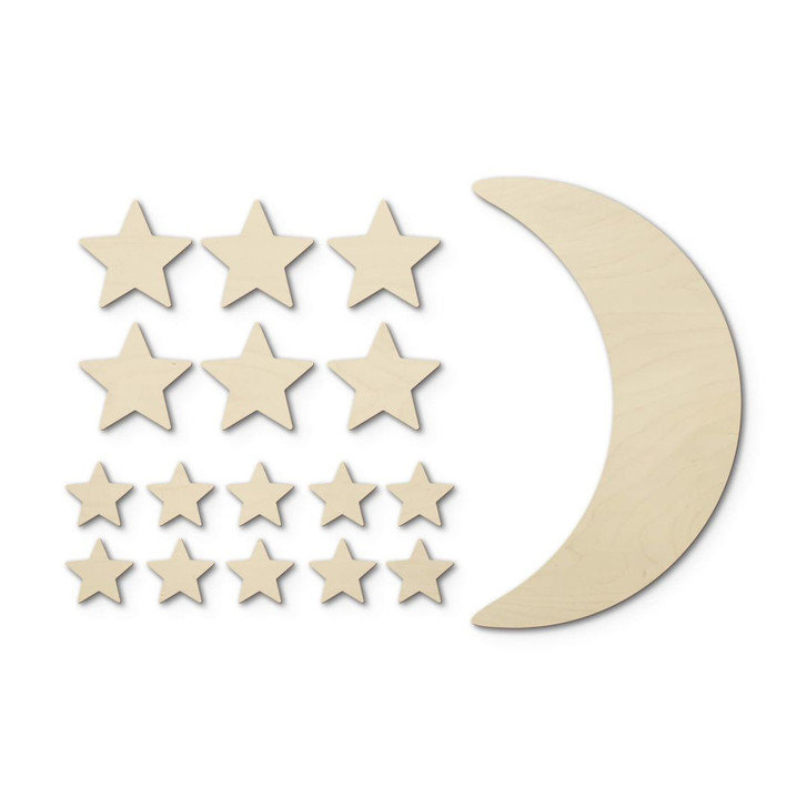 Zum Anbringen der Holzdekorationen empfehlen wir unsere Klebeknete Tesa Tack, die du gleich als Ergänzungsprodukt mitbestellen kannst. Die einzelnen Teile von „Mond und Sterne“ lassen sich aus den Trägerplatten herausdrücken. Alle Masse sind auf ganze Zentimeter auf- oder abgerundet.