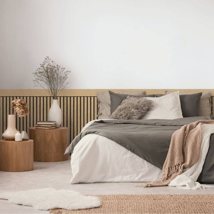 Wallpanel - Moderne Vliestapete in Akustikpaneel-Holzoptik Braun und Schwarz – mit 3D-Wirkung und Tiefenstruktur.