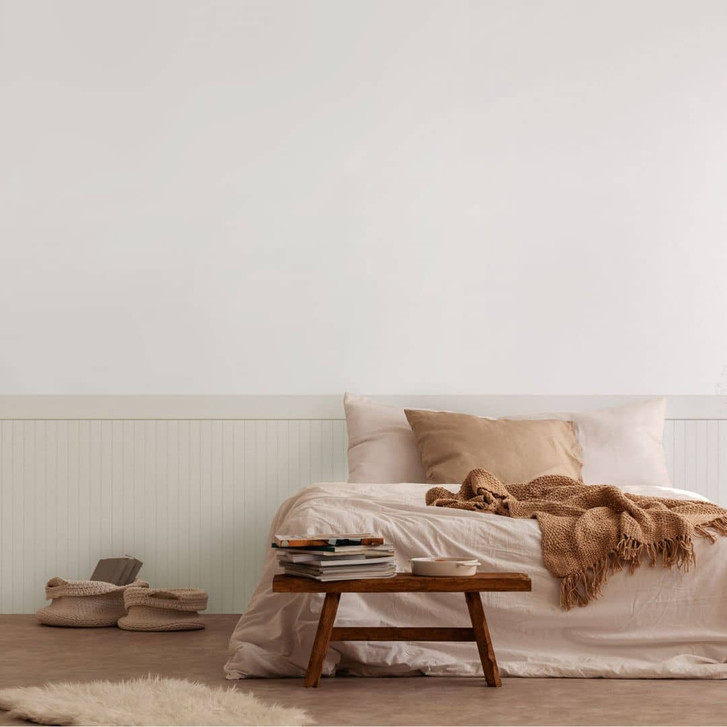 Wallpanel - Helle Vliestapete in Akustikpaneel-Optik Weiß-grau – natürlicher Look mit realistischer Holzstruktur.