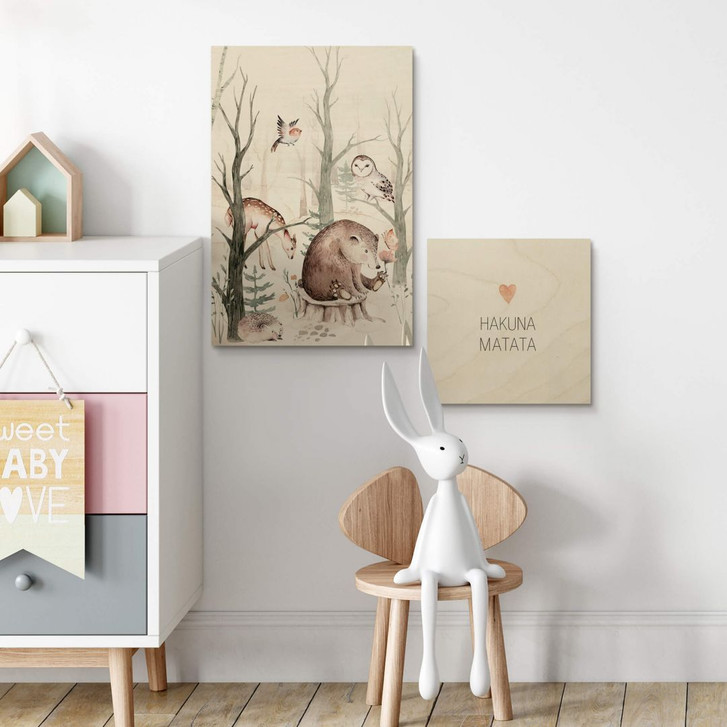 Holzposter Kvilis - Tierfreunde im Wald