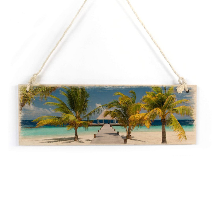 Möchtest du dein Zuhause neu dekorieren und brauchst Inspiration? Mit diesem Holzaccessoire gelingt dir ein neuer, tropischer Look! Das Foto aus der Serie Strand & Wasser und Landschaften zeigt einen paradiesischen Ort und vermittelt ein fantastisches Wohlgefühl. Das türkisfarbene Meer scheint an diesem atemberaubenden Strand unendlich zu sein. Der weiche Sand unter den Füssen ist angenehm warm und lädt zu einem entspannten Spaziergang ein. Dieses exotische Motiv sorgt garantiert für Urlaubsfeeling und lässt dich die Seele baumeln. Das Holzschild aus nachhaltigem Material setzt wunderbare natürliche Akzente im Raum, ohne aufdringlich zu wirken. Wähle zwischen dem Holzschild zum Hinstellen und dem zum Aufhängen mit Sisalseil. In jedem Fall ist das Naturprodukt in Blau und Bunt mit seiner schönen Maserung einzigartig.