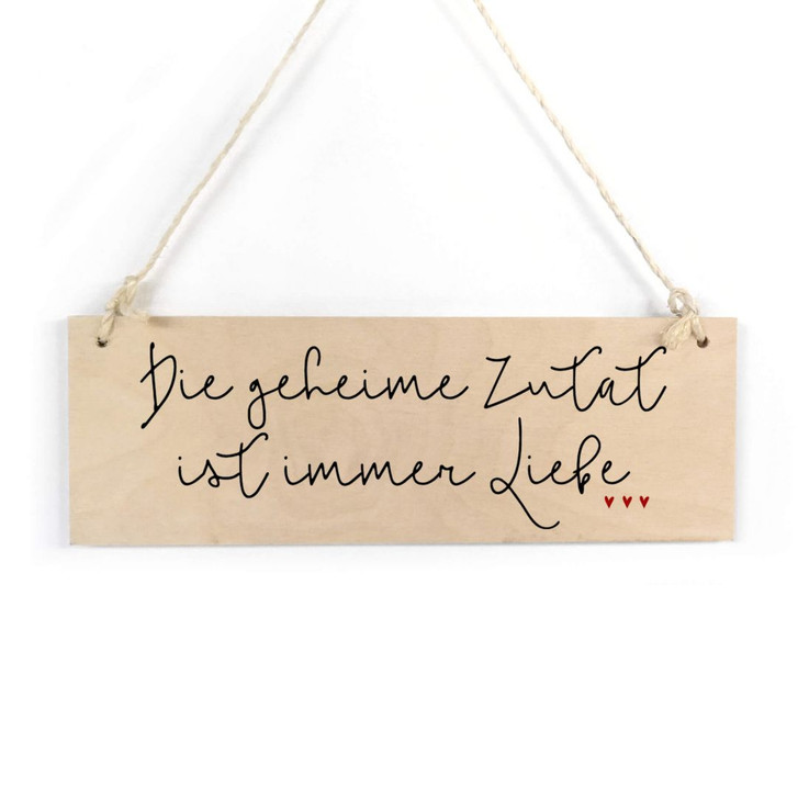 Verleihe deinem Koch- und Essbereich mit diesem dekorativen Schild einen modernen Touch! Die Typografie mit ihrem liebevollen Motto wird dir dabei helfen. Wer von der Liebe nicht genug bekommen kann, kann die Wand mit diesem romantischen Motiv schmücken. Mache Romantik zu deinem Lieblingsthema und verleihe deinem Wohnbereich ein emotionales Ambiente. Als Naturprodukt bringt die Holzdekoration ein besonders angenehmes Raumklima zu dir. Dieses Holzschild in Beige nimmt nicht viel Platz ein und versprüht mit seiner Natürlichkeit einen friedlichen Charme. Und der typografische Stil passt wunderbar dazu. Durch ihre natürliche Maserung ist jedes Stück ein Unikat und mit ihrer schlichten Farbgebung sehen sie dennoch trendig und modern aus.