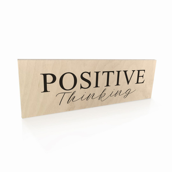 Schaffe dir mit unseren Holzschildern deine ganz persönliche Wohlfühloase! Inspirierende Sprüche wirken sich positiv auf unseren Geist und unsere Seele aus. Dieser Spruch wird dir helfen, dich glücklich und zufrieden zu fühlen. Positives Denken ist der Schlüssel zum Glück. Mit mehr Optimismus kannst du Ziele erreichen, die du nicht für möglich gehalten hast. Eine positive Lebenseinstellung reduziert Stress und Sorgen und ist daher besser für deine Gesundheit. Der Schriftzug „Positive Thinking“ wirkt schlicht, aber mit grosser Wirkung. Lass dich überraschen! Das Produkt ist aus Naturholz gefertigt und besticht durch seine einzigartige Farbgebung. Diese Holzdekoration in Beige sorgt garantiert für eine harmonische Wohlfühlatmosphäre.