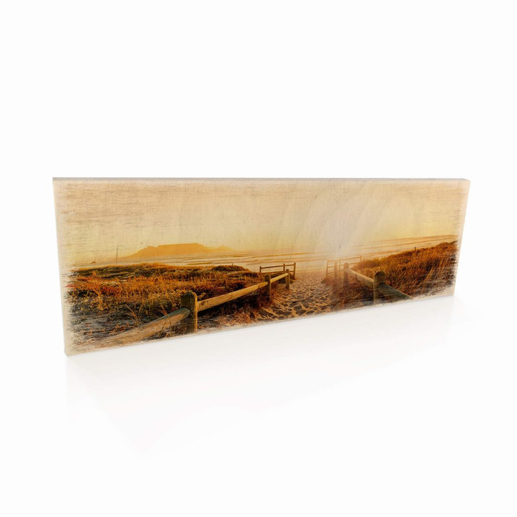 Holzschild Sunset at the beach
