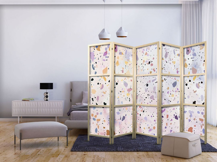 Japanischer Paravent, Raumteiler freistehend, Trennwand - Confetti-Style Terrazzo: Purple-Pink Pattern
