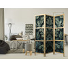 Japanischer Paravent, Raumteiler freistehend, Trennwand - Dark Green Victorian Leaves: Botanical Carving