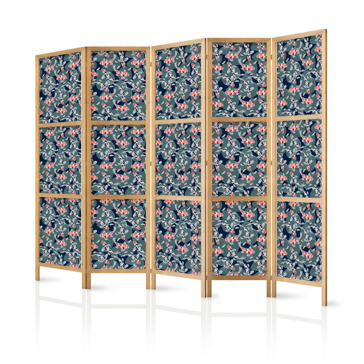 Japanischer Paravent, Raumteiler freistehend, Trennwand - Fish Among Leaves