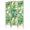 Japanischer Paravent, Raumteiler freistehend, Trennwand - Monstera und Palmblätter