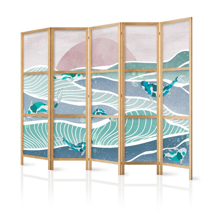 Japanischer Paravent, Raumteiler freistehend, Trennwand - Picturesque Landscape with Fish