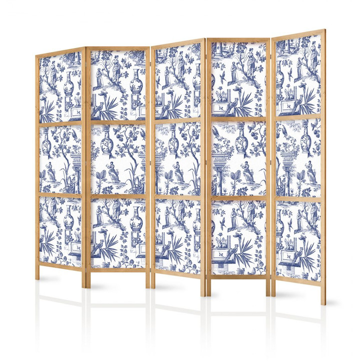 Japanischer Paravent, Raumteiler freistehend, Trennwand - Rome and Botany: Blue Greek and Plant Pattern