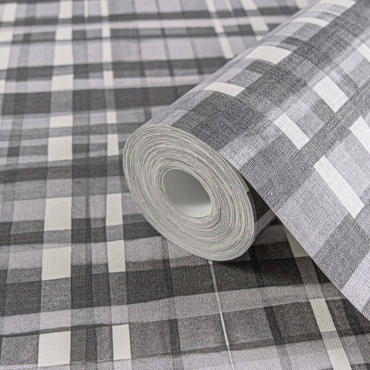 Anna D'Andrea - Zeitlose Vliestapete mit grauem Karomuster auf weißem Grund