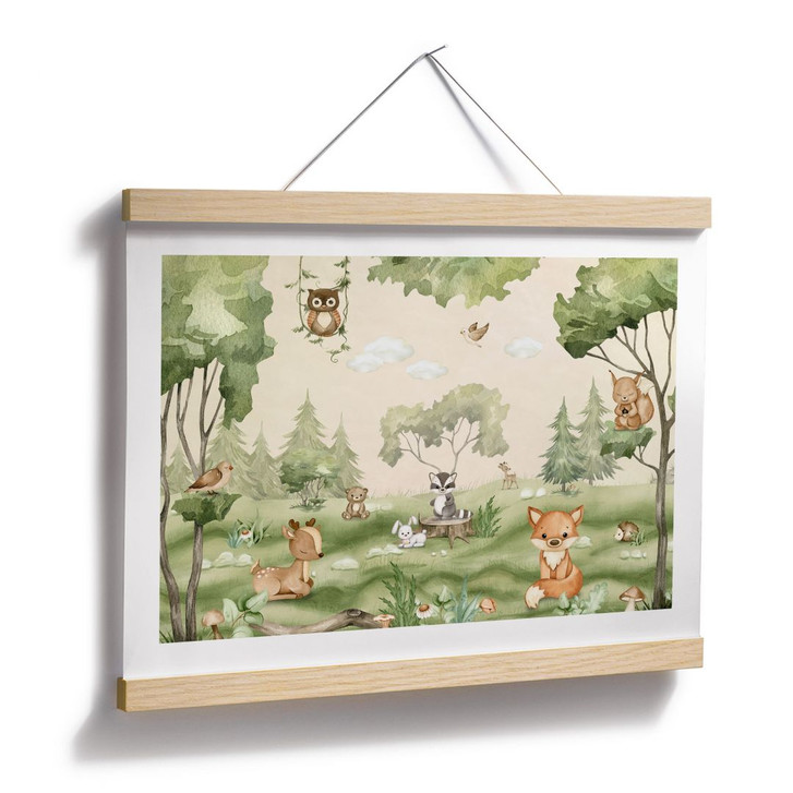 Dieses Poster bringt die natürliche Schönheit und den kindlichen Charme des Waldes direkt in dein Zuhause. Mit warmen Farben und liebevollen Details zeigt Oliver Robins' Motiv eine fröhliche Gemeinschaft von Waldbewohnern – vom freundlichen Fuchs bis zur wachsamen Eule. Perfekt für Kinderzimmer oder Räume, die eine fantasievolle Atmosphäre brauchen.