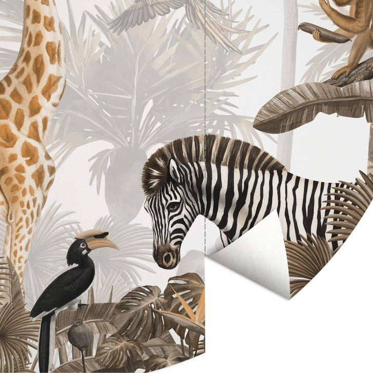 Für Kinder ist das eigene Zimmer ein Ort zum Spielen und Toben, aber auch ein Rückzugsort zum Ausruhen und Entspannen. Daher ist es besonders wichtig, diesen Raum angemessen und abwechslungsreich zu gestalten. Die liebevolle Illustration von Kikki Belle verwandelt das Kinderzimmer in eine farbenfrohe Dschungelwelt. Lass dein Kind eine Vielzahl wilder Tiere entdecken! Affen, Elefanten, Tukane, Giraffen und Zebras – alles neue Freunde für kleine Entdecker! Die Pflanzen sind in Sepia-Tönen dargestellt, um einen Kontrast zu den farbenfrohen Tieren zu schaffen.