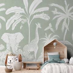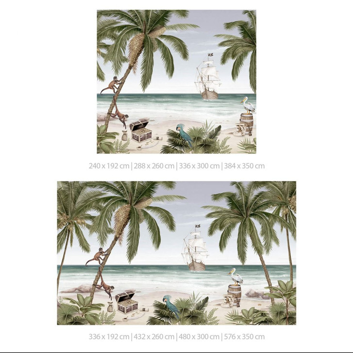 Kleine Abenteurer aufgepasst: Dieses Piratenschiff ist auf heisser Spur nach einem Goldschatz. Die tierischen Inselbewohner – Affen, Papageien und andere Vögel – bewachen die wertvolle Schatztruhe. Das Strandmotiv mit tropischen Palmen und Pflanzen bringt viel Spass ins Kinderzimmer. Es kann verwendet werden, um spannende Geschichten zu erzählen, und verleiht der Wand ausserdem ein farbenfrohes Aussehen.