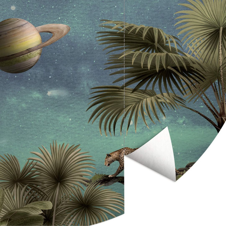 Kinderzimmer Fototapete Kikki Belle - Tropische Fantasiewelt mit Planeten und Palmen - Rund - Selbstklebend/Vlies