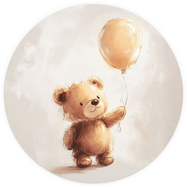 Kinderzimmer Fototapete Kleiner Teddybär mit Luftballon - Magnusson - Rund - Selbstklebend/Vlies
