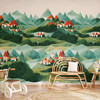 Kinderzimmer Fototapete Treechild - Kleines Dorf inmitten grüner Hügel