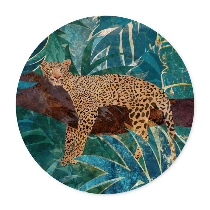 Kinderzimmer Poster Leopard im smaragdgrünen Dschungel - Manovski - Rund