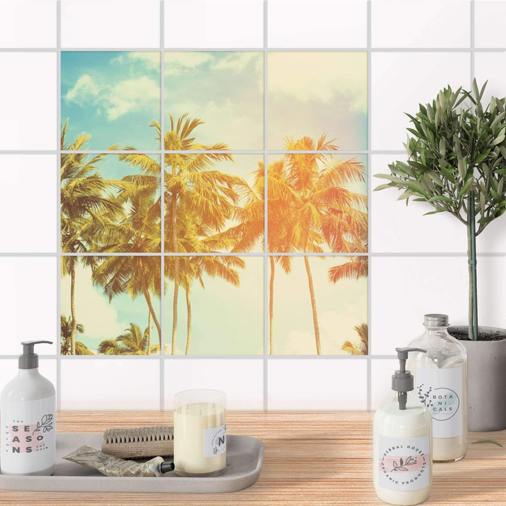Unsere Klebefliesen Sun Flair sind passgenau zugeschnitten und der Blickfang in Küche & Bad. Die Klebefliesen sind hochwertige, selbsthaftende Vinylfolien (seidenmatt) und können dank Bubble-free Technologie kinderleicht verklebt werden.