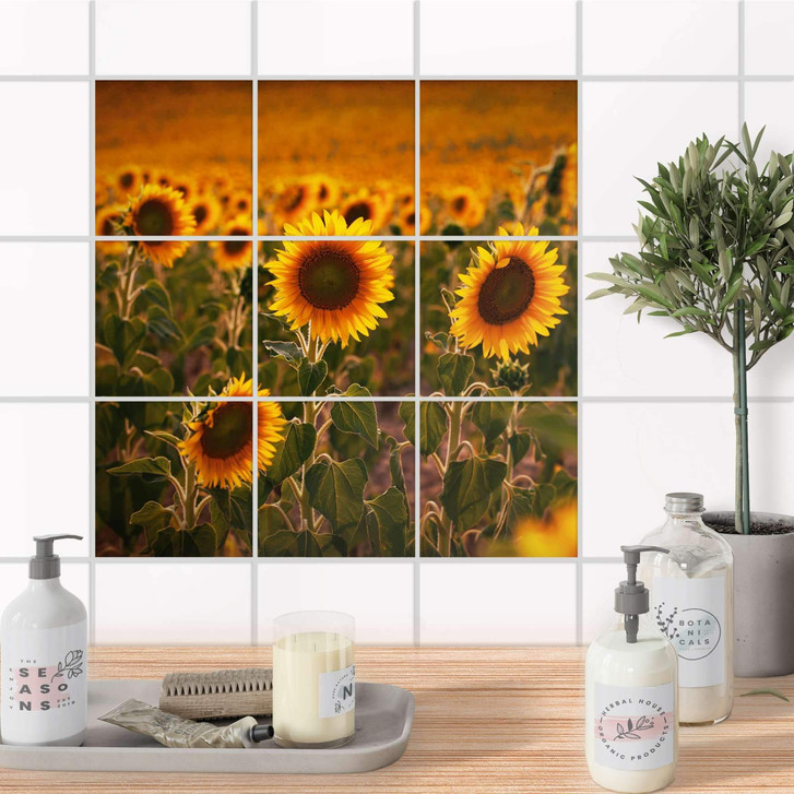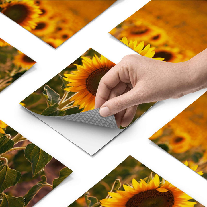 Unsere Klebefliesen Sunflowers sind passgenau zugeschnitten und der Blickfang in Küche & Bad. Die Klebefliesen sind hochwertige, selbsthaftende Vinylfolien (seidenmatt) und können dank Bubble-free Technologie kinderleicht verklebt werden.