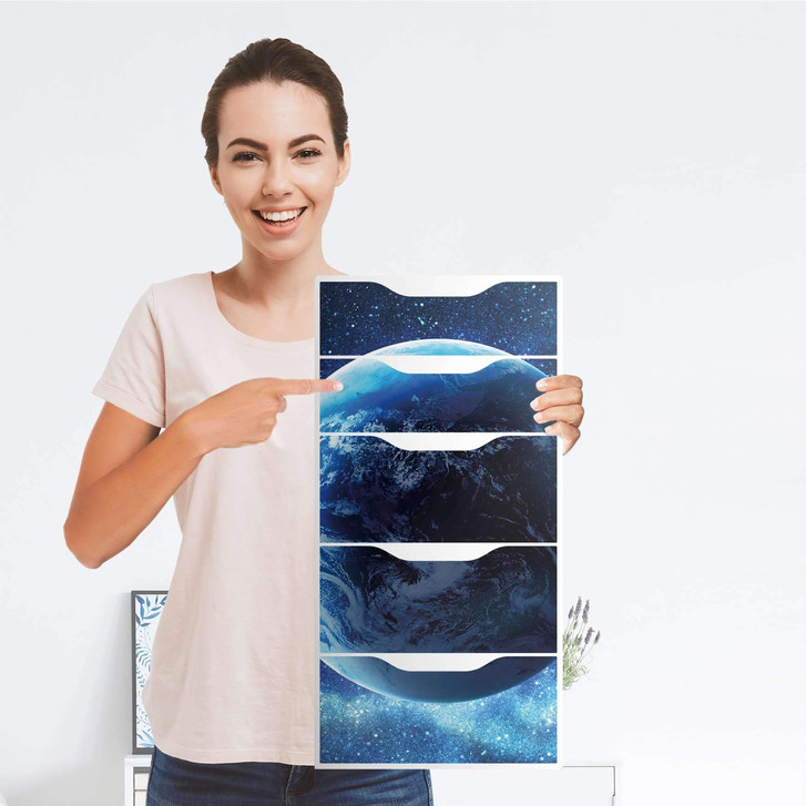 Unsere Klebefolie Planet Blue für das Alex 5 Schubladen ist der Blickfang im Wohnzimmer. Unsere Dekofolien sind hochwertige, selbsthaftende Vinylfolien (seidenmatt) und können dank Bubble-free Technologie kinderleicht verklebt werden.