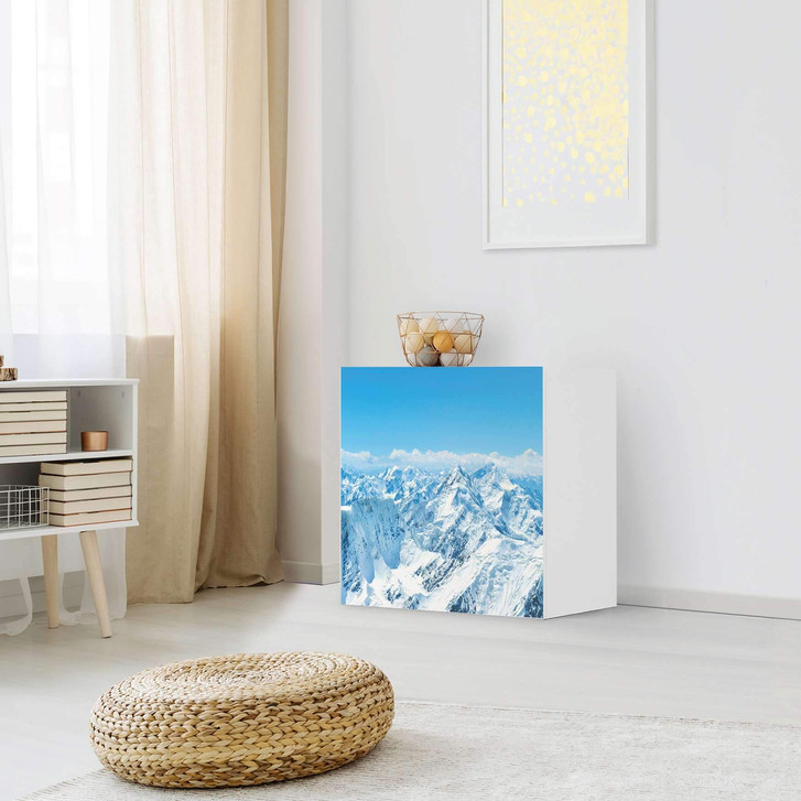 Unsere Klebefolie Himalaya für das Besta Regal 1 Türe ist der Blickfang in jedem Wohnzimmer. Die Dekofolien sind hochwertige, selbsthaftende Vinylfolien (seidenmatt) und können dank Bubble-free Technologie kinderleicht verklebt werden.