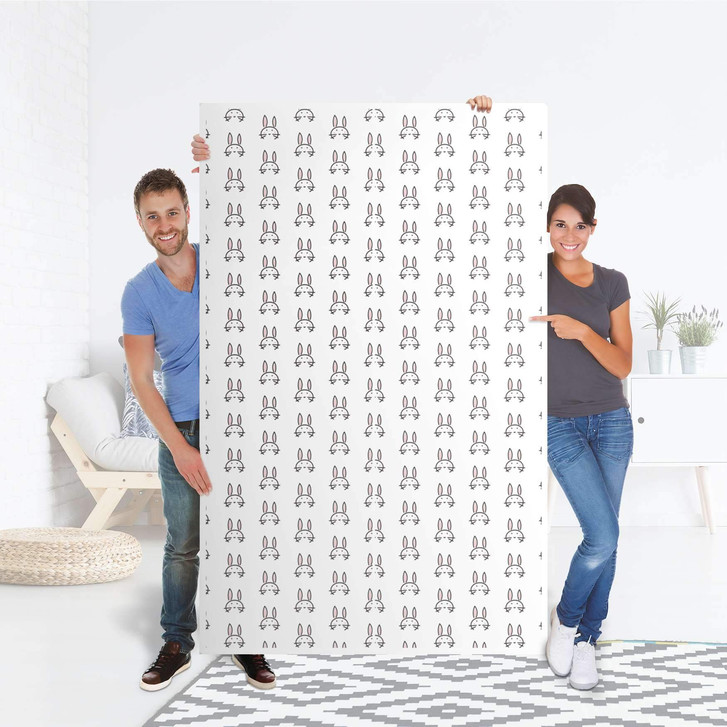 Unsere Klebefolie Hoppel für den Besta Schrank 2 Türen (hoch) ist der Blickfang in jedem Kinderzimmer. Die Dekofolien sind hochwertige, selbsthaftende Vinylfolien (seidenmatt) und können dank Bubble-free Technologie kinderleicht verklebt werden.