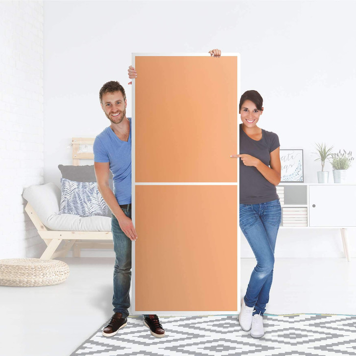 Unsere Klebefolie Orange Light für das Billy Regal 6 Fächer ist der Blickfang in jedem Wohnzimmer. Die Dekofolien sind hochwertige, selbsthaftende Vinylfolien (seidenmatt) und können dank Bubble-free Technologie kinderleicht verklebt werden.