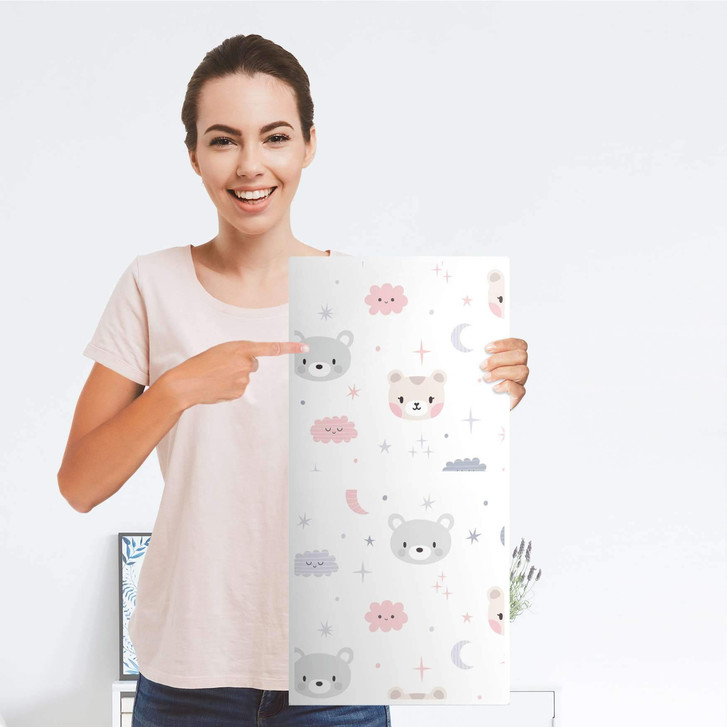 Unsere Klebefolie Sweet Dreams für das Expedit Regal 2 Türen (hoch) ist der Blickfang in jedem Kinderzimmer. Die Dekofolien sind hochwertige, selbsthaftende Vinylfolien (seidenmatt) und können dank Bubble-free Technologie kinderleicht verklebt werden.