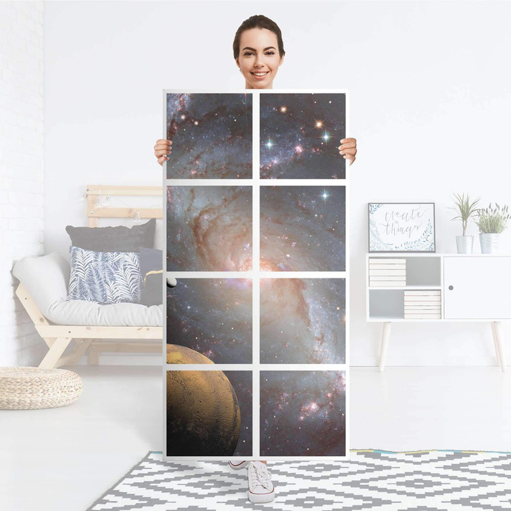 Unsere Klebefolie Milky Way für das Expedit Regal 8 Türen ist der Blickfang in jedem Wohnzimmer. Die Dekofolien sind hochwertige, selbsthaftende Vinylfolien (seidenmatt) und können dank Bubble-free Technologie kinderleicht verklebt werden.
